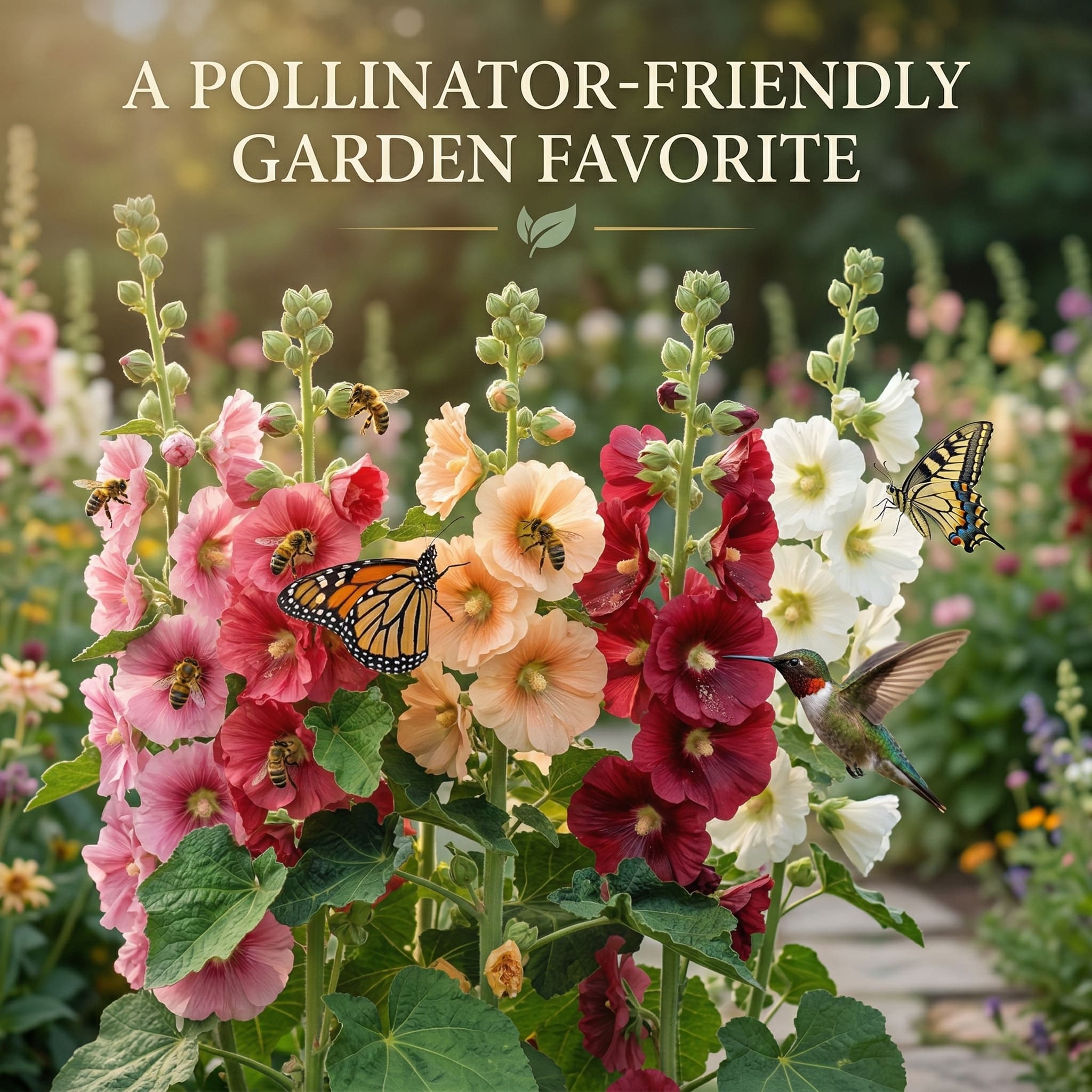 ⚠️ Pro Tip: Hollyhocks are biennials. In their first year, they will grow a lush mound of green foliage. In their second year, they will shoot up their magnificent flowering stalks. Leave the last blooms on the stalk to drop seeds, and they will naturally replenish your garden year after year!